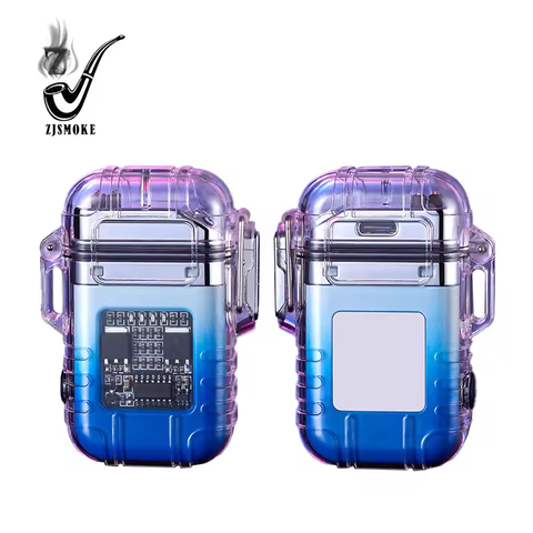 Encendedor luminoso tipo C a prueba de viento para exteriores con carcasa transparente, impermeable, luz de arco doble, encendido USB
