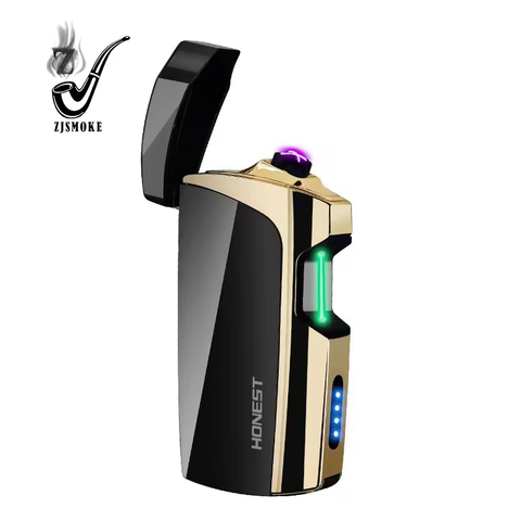 Encendedor eléctrico moderno con pantalla Digital de arco de Plasma doble, accesorio para fumar a prueba de viento para regalos de negocios para cigarros